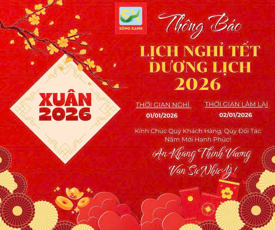 - Trong không khí chào đón năm mới 2026, Công ty Sông Xanh Kính gửi Quý khách hàng, Quý đối tác cùng toàn thể CBNV lịch nghỉ Tết Dương Lịch như sau: